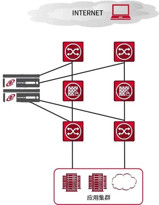 在上圖的組網(wǎng)結(jié)構(gòu)中,我們可以直觀看到,leyu.樂魚通明湖應(yīng)用交付控制器設(shè)備可以很容易的接入在現(xiàn)有網(wǎng)絡(luò)環(huán)境中,無需對(duì)原有網(wǎng)絡(luò)配置做任何改動(dòng),只需在leyu.樂魚通明湖應(yīng)用交付控制器設(shè)備與核心交換機(jī)間配置相應(yīng)的端口、VLAN及IP地址就可以完成設(shè)備互連,即可實(shí)現(xiàn)相關(guān)負(fù)載均衡技術(shù),同時(shí)可以在接入交換機(jī)或核心交換機(jī)上對(duì)服務(wù)器進(jìn)行橫向擴(kuò)展。